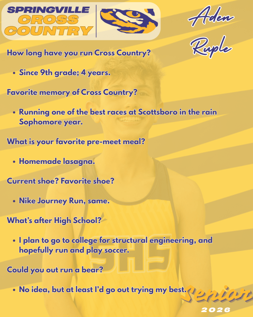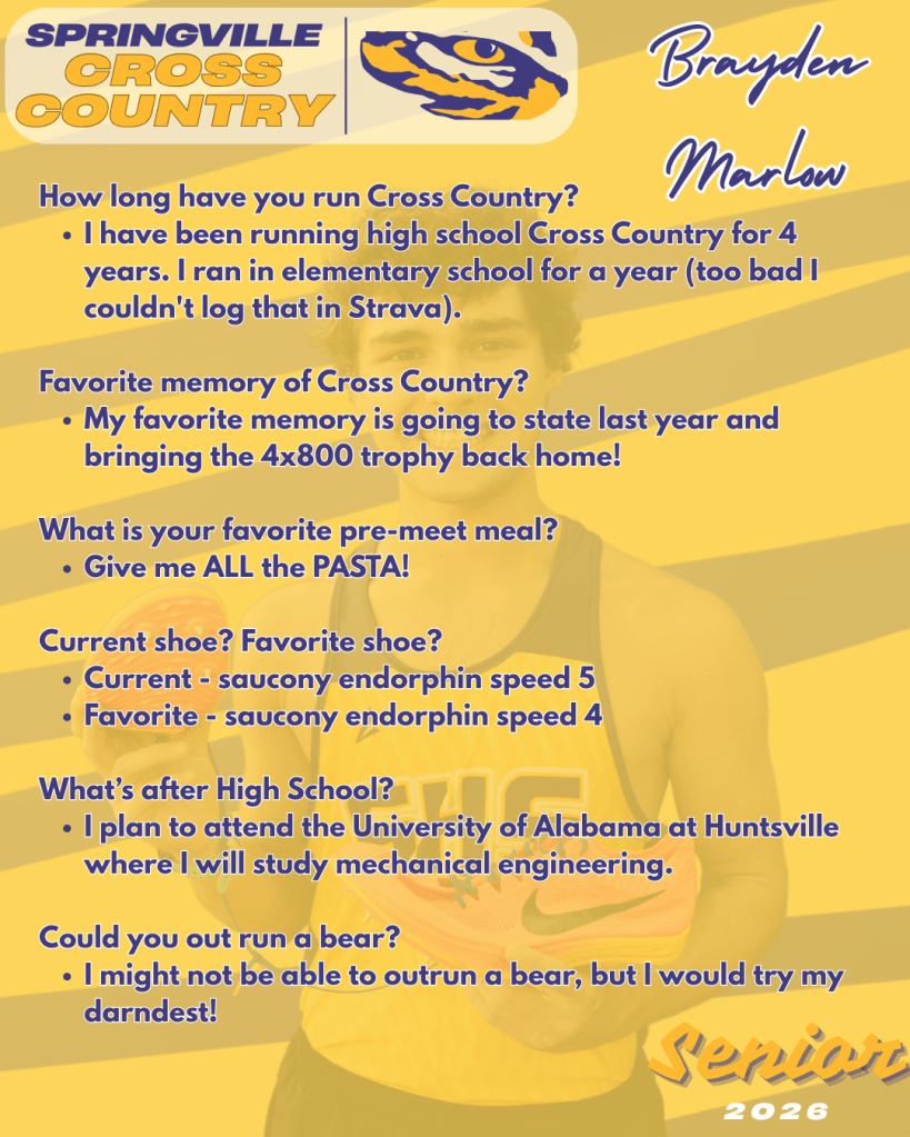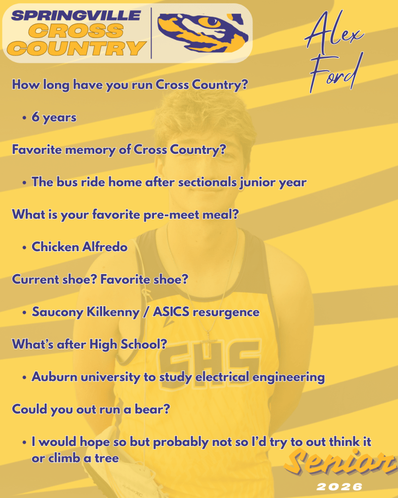 This season, we’re excited to shine a spotlight on our senior cross country runners! These athletes have put in countless miles, early mornings, and hard-fought races over the years, and their dedication has left a lasting impact on our team. More than just runners, they are leaders, encouragers, and role models who have helped shape the culture of our program. As they lace up for their final season, we celebrate their achievements, their memories, and the example they leave behind for the next generation of runners.